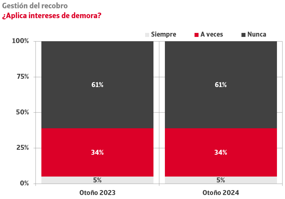La Ley 3/2004, de 29 de diciembre, por la que se imponen medidas de lucha contra la morosidad en las operaciones comerciales, reconoce el derecho de los proveedores a reclamar intereses de demora si los clientes retrasan el pago de sus facturas. Sin embargo, el porcentaje de empresas que renuncia totalmente a la aplicación de estos intereses se sitúa en el 61%. Solo el 5% de las empresas es sistemático a la hora de ejercer su derecho.
