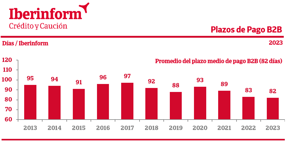 Los plazos de pago de las empresas registraron en 2023, último ejercicio del que hay datos completos, una reducción de un día hasta situarse en los 82 días, de acuerdo con el seguimiento sobre los plazos de pago en la empresa española realizado por Iberinform. Se trata del valor más bajo desde que el 2010 la legislación sobre plazos de pagos comerciales impulsó la limitación a los 60 días naturales a contar desde la fecha de recepción de las mercancías o prestación de los servicios. A lo largo de este periodo, los plazos de pago en España se han mantenido lejos del horizonte que trata de impulsar la legislación española y europea, en una horquilla que va de los 97 días de 2017 a los 82 actuales.